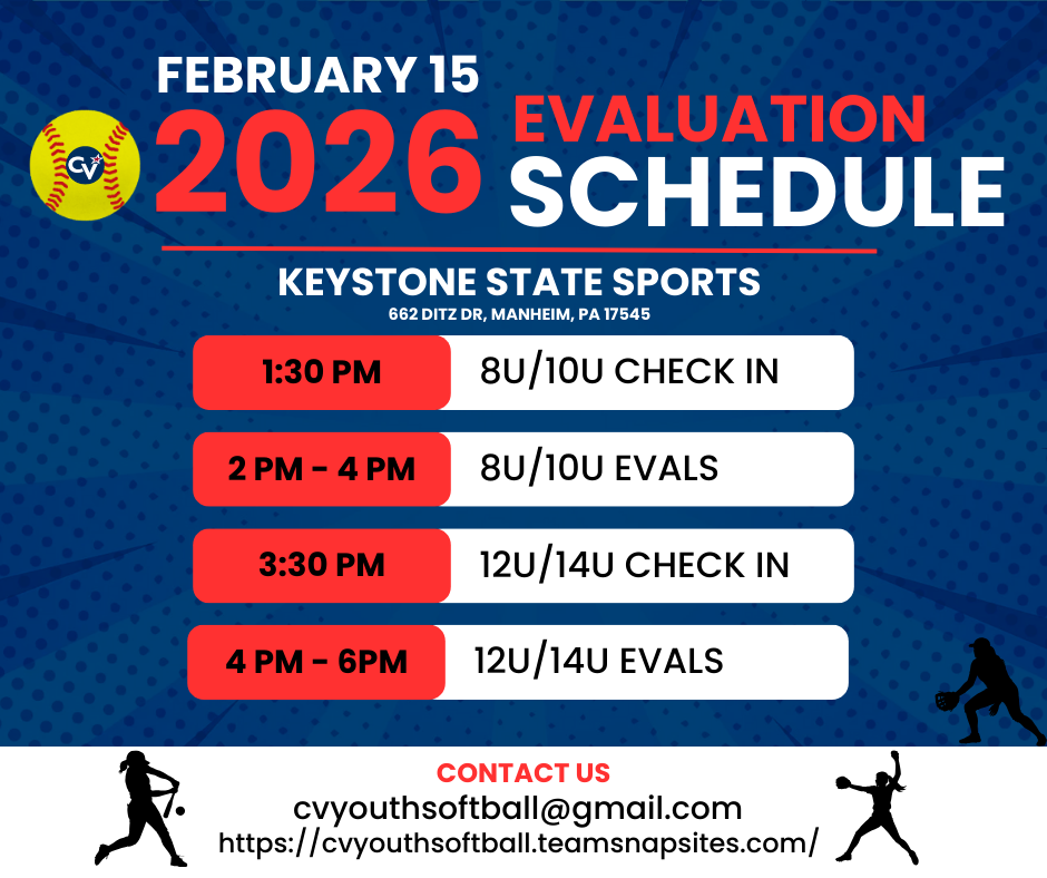 - 4PM – 6PM / 12U and 14U Evaluations